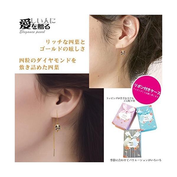 幸運呼ぶアイテム K18金 K18gp 四葉 クローバー ゆらゆら 上等 きらきら 人気 ロング ウェーブピアス アメリカン ピアス レーディス